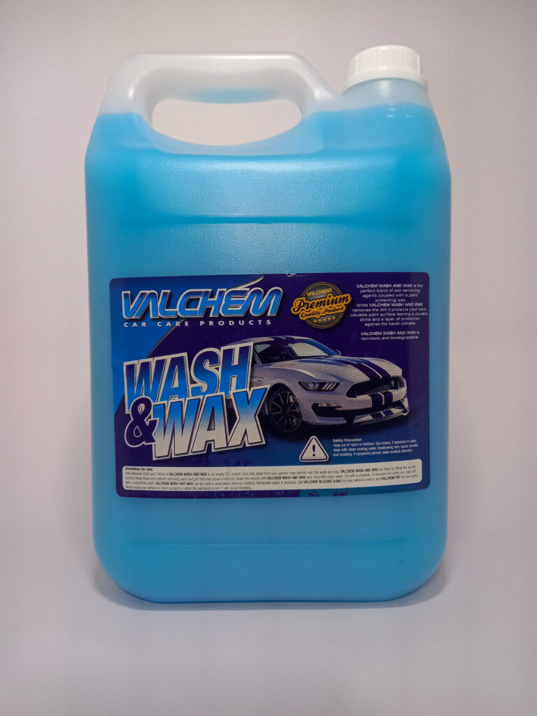 VALCHEM WASH AND WAX IS A BLEND OF SOIL REMOVING AGENTS COUPLED WITH PAINT PROTECTING LIQUID WAX USED TO REMOVE DIRT AND TOP UP YOUR VEHICLES WAX COAT EVERY TIME YOU WASH IT. AS LITTLE AS 50ml IN A 20L BUCKET OF WATER WILL DO THE JOB.
